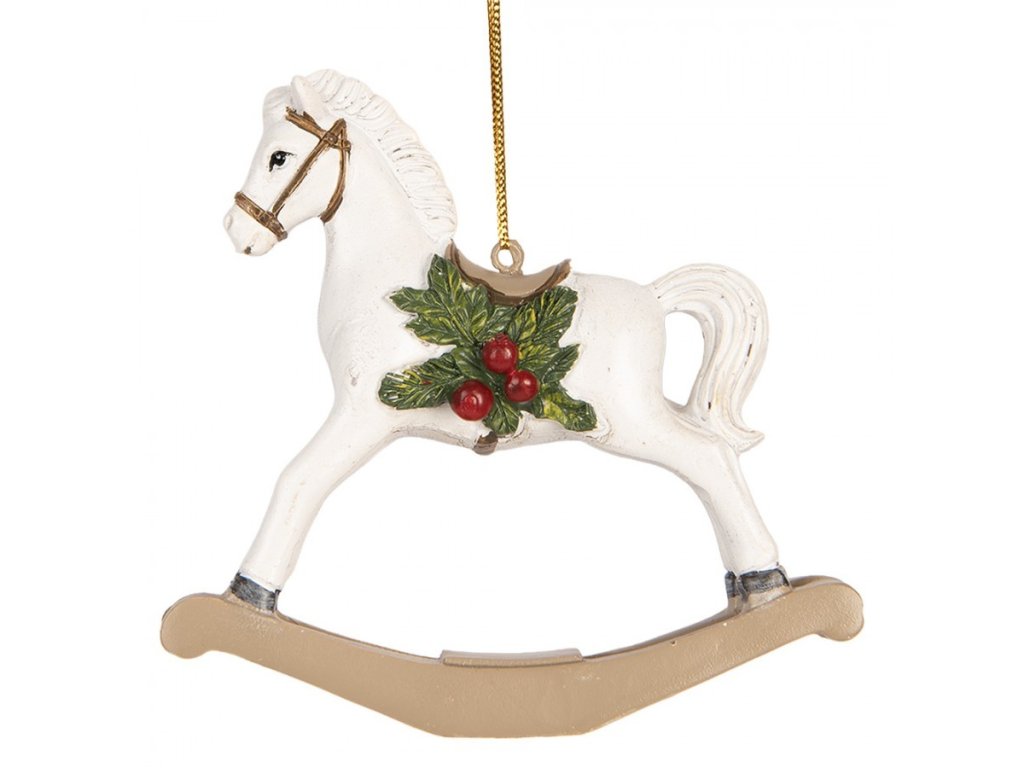 › Vánoce › Bílá antik závěsná dekorace houpací koník - 12*4*11 cm